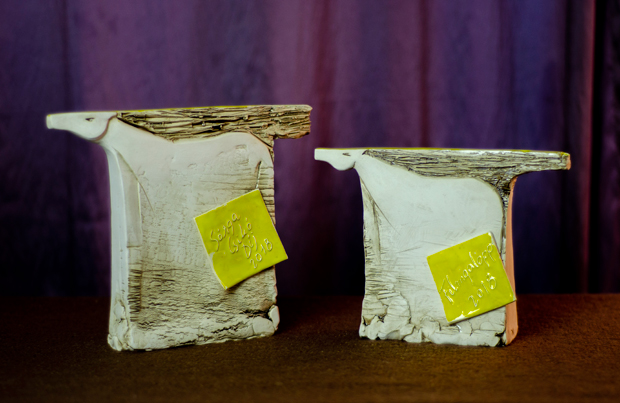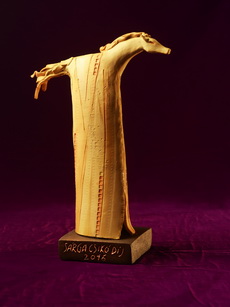 Az első, filmszalagon vágtató lovacskát a sepsiszentgyörgyi Vrabie Zsolt tervezte 2012-ben. Ehhez egy évvel később egy vaknyomással készült Sárga csikó-filmjelenet, Adorjáni Márta munkája társult. 2014-ben a trófea új alakot öltött: a filmszalag keretben vágtató csikó alakját Koncsag Ádám szobrászművész tervezte.